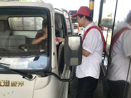 “大中午的,天氣熱,剛才還暈乎乎的想睡覺,現在喝了一杯冰冰涼的綠豆湯,整個人都舒暢了。”一位貨車師傅開心地說。 “沒想到,你們收費站還有這個服務,這次我要出趟遠門,說不定路上還真能用的上,謝謝呀!”一位接過礦泉水和風油精的老師傅連聲道謝。 天氣雖炎熱,服務不“打烊”。 在活動中,志愿者們不顧自身大汗淋漓,仍身披橫幅,頭戴小紅帽,面帶微笑向途經收費所的司機們遞上一杯杯綠豆湯、一瓶瓶礦泉水。同時,大家還不忘宣傳行車安全注意事項,提醒司機朋友在高溫酷暑時節多注意行車安全。