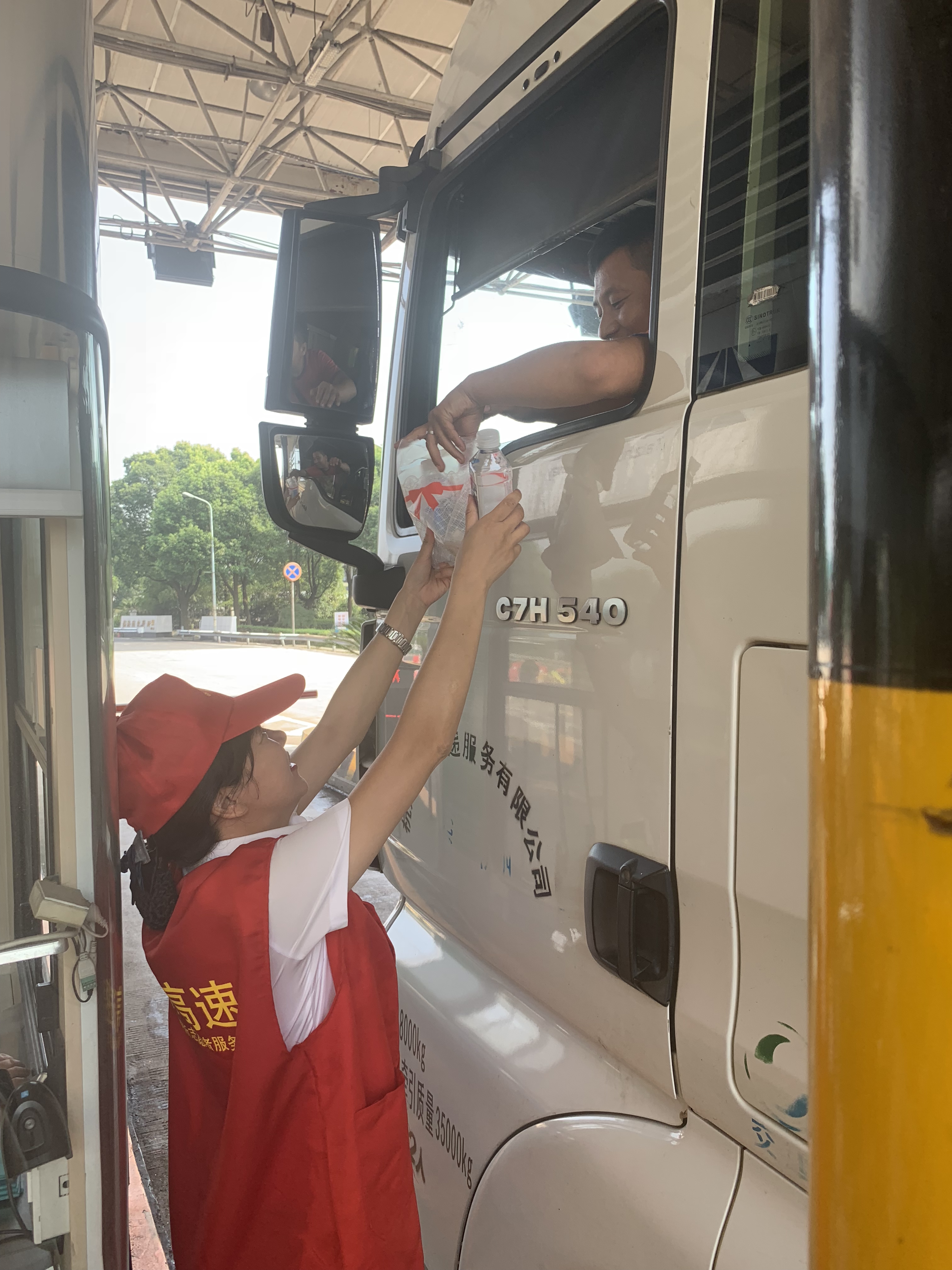 服務在崗,情系災區(qū) ——臨海南收費所組織開展“獻愛心”活動 8月14日中午,臨海南收費所車道安全島內(nèi)搭起臨時愛心服務臺,準備了禮品袋、礦泉水、風油精、人丹等物品,為過往司乘人員免費提供解暑用品。 高溫天氣中,該所員工身穿耀眼的“紅馬甲”,面帶微笑,顯得格外耀眼動人。