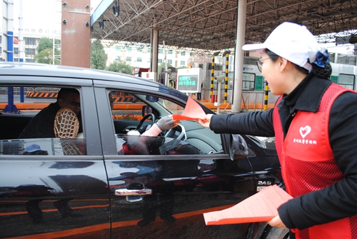 圖為志愿者向司乘人員發(fā)放宣傳單 活動現(xiàn)場,志愿者們送上熱騰騰的散粉糊、紅糖姜茶,并向貨車司機發(fā)放貨車非現(xiàn)金支付優(yōu)惠宣傳單。大家積極為過往的司乘人員送上冬日的一份溫暖和關(guān)懷,驅(qū)散他們路途的寒冷,贏得了他們的肯定。