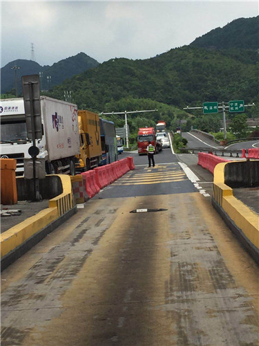 已入三伏天,熱浪席卷大地,透藍(lán)的天懸著火球般的太陽炙烤著大地。 8:30,正是交接班時間,由于四號崗?fù)ぢ访嬲谑┕ぃ瑹o法使用,面對這經(jīng)常出現(xiàn)的大流量,出口承受著巨大的壓力,稍有狀況,就會出現(xiàn)嚴(yán)重的擁堵現(xiàn)象。班長李寧一邊提醒大家一定要加快收費速度,自己一邊一直站在一號崗?fù)ね饷妫P(guān)注著各個車道可能出現(xiàn)的突發(fā)情況。收費員蔣弓則奔走于5號車道和ETC車道之間,處理著隨時而來的誤闖車和黑名單車輛。所有的機動人員、行政人員已全部到崗待命。