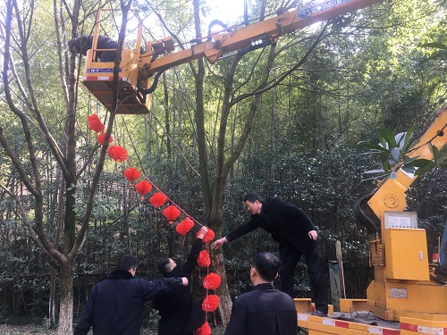 上圖為掛燈籠現(xiàn)場