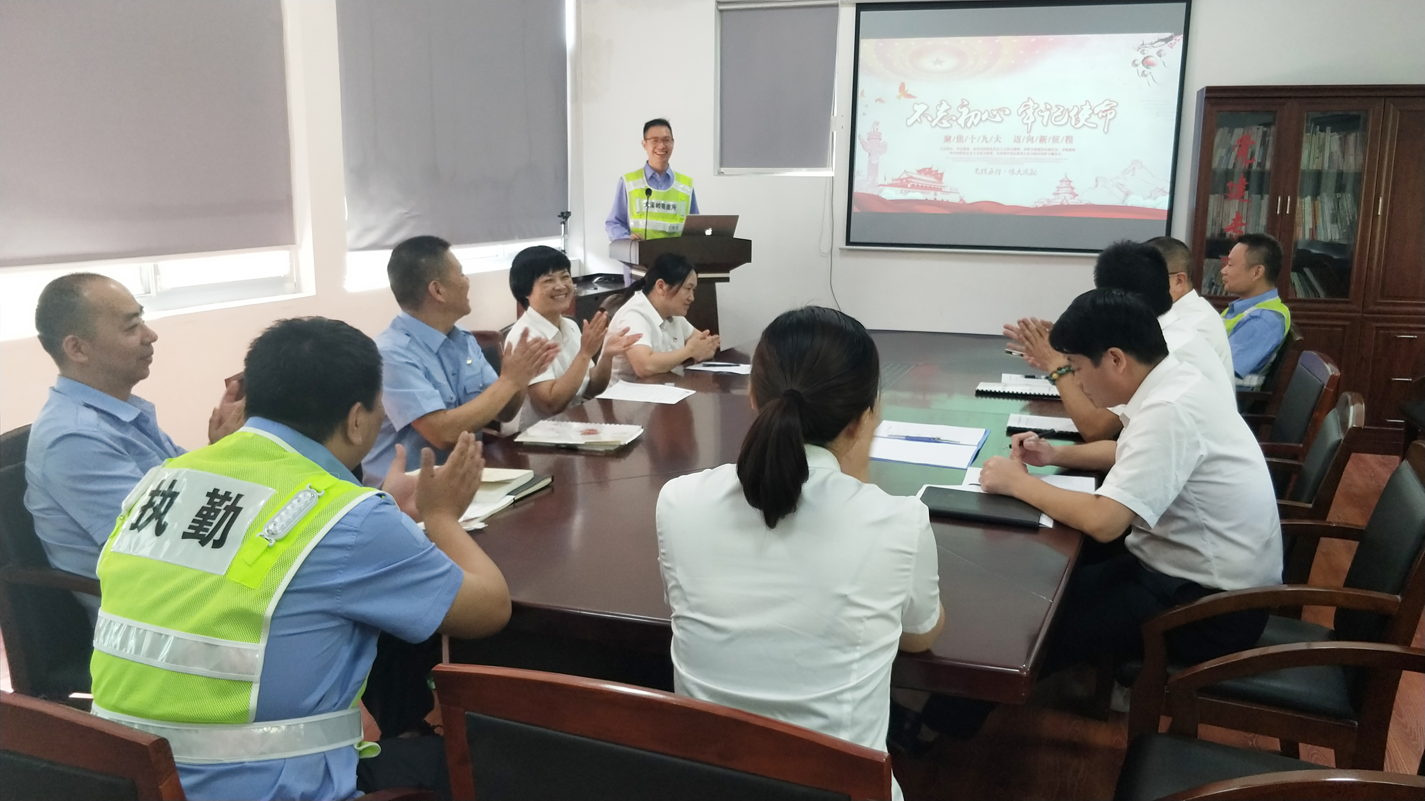圖為演講賽現(xiàn)場 此次演講由隧道所黨員、執(zhí)勤隊業(yè)務(wù)骨干參加,演講比賽過程中,參賽的七位選手緊緊圍繞“不忘初心,牢記使命”這一主題,結(jié)合各自的本職工作,立足崗位實際,從不同角度、不同層面,說身邊的人、講身邊的事。有執(zhí)勤隊長對隧道安全責任的解讀,機電人員對隧道設(shè)備維護的擔當,中控員對隧道24小時堅守的承諾,安保人員對隧道消防安全的認知,還有行政人員對奉獻的感慨,演講者們談感想、抒情懷、表決心,為大家分享了各自對初心和使命的認識,從內(nèi)心抒發(fā)了對中國共產(chǎn)黨、偉大祖國無限敬意和熱愛之情。他們用包含深情,富有感染力的演繹,使全場觀眾深深地感受到他們強烈的愛國熱情。