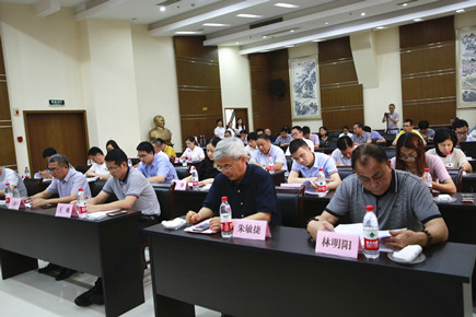 圖為公司副董事長(zhǎng)、總經(jīng)理張建平主持會(huì)議并作匯報(bào)