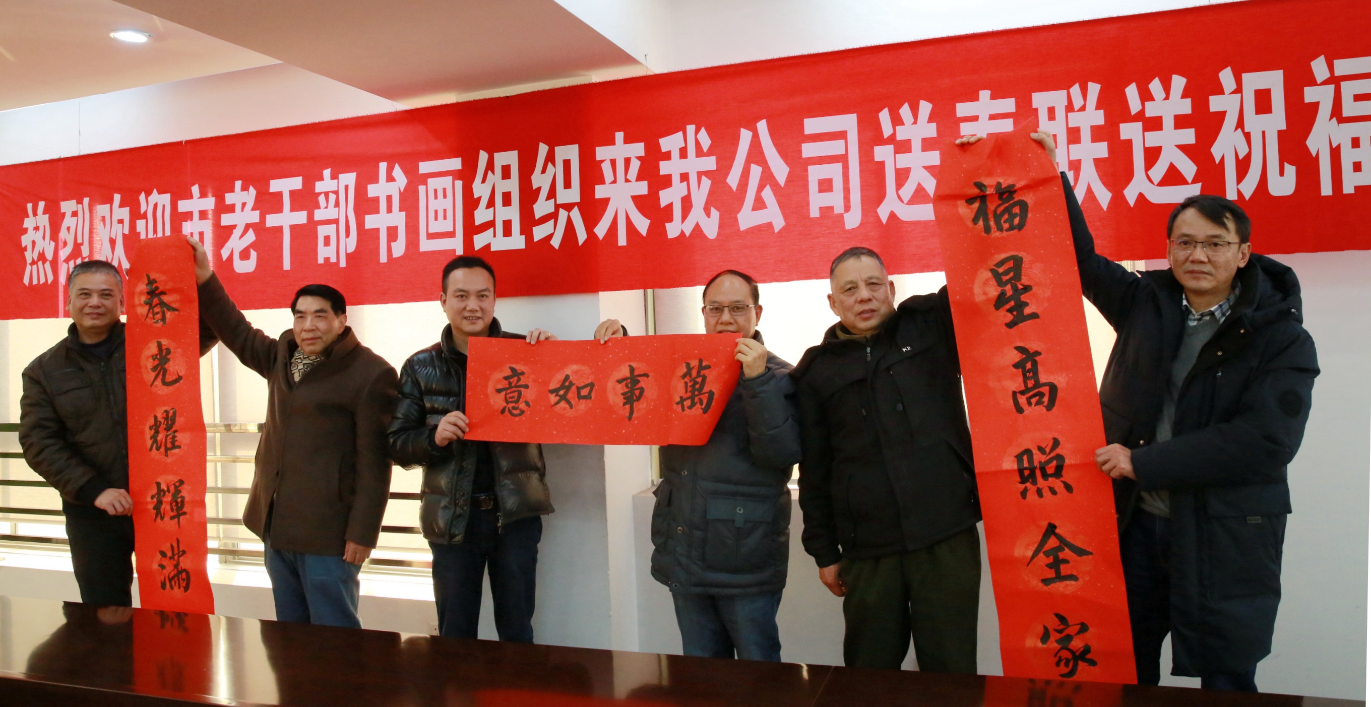 市老年書畫研究會會長楊通河一行來公司送春聯(lián)送祝福 1月17日下午,市老年書畫研究會會長楊通河,市直機(jī)關(guān)老干部書畫協(xié)會領(lǐng)導(dǎo)施巨日、陳孔梅一行來公司送春聯(lián)送祝福,感謝公司對研究會的支持和關(guān)愛,祝愿公司在新的一年里紅紅火火,萬事如意,經(jīng)營發(fā)展越來越好。