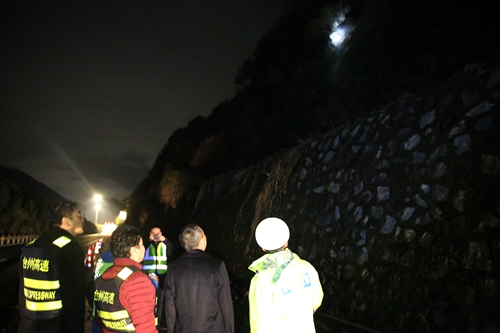 張建平與高速交警、施工單位等相關(guān)人員仔細勘踏險情現(xiàn)場,連夜會商制定解決高邊坡落石臺上的巨石方案。由于深夜天黑,高邊坡坡度較高,沒有直接供人上坡的道路,夜間施工存在較大困難且易造成人身危險,只能安排人員緊盯現(xiàn)場通宵觀察情況,隨時匯報險情進展,等天一亮立即清理二級平臺上的大落石。張建平特別叮囑相關(guān)部門負責(zé)人,近期雨水還將持續(xù)一段時間,容易造成塌方等自然災(zāi)害的發(fā)生,一定要組織人員再次對高速全線高邊坡開展隱患大排查。