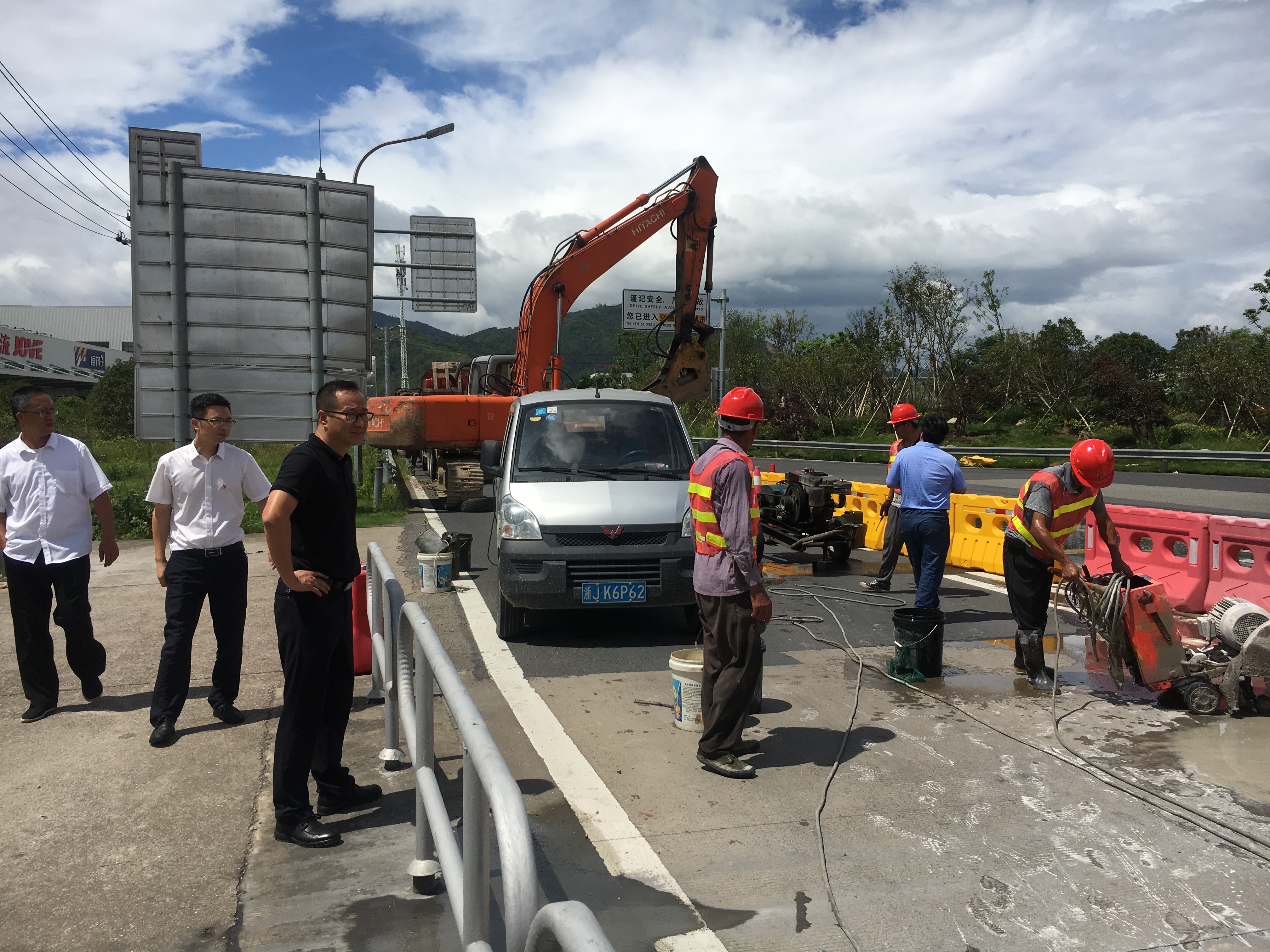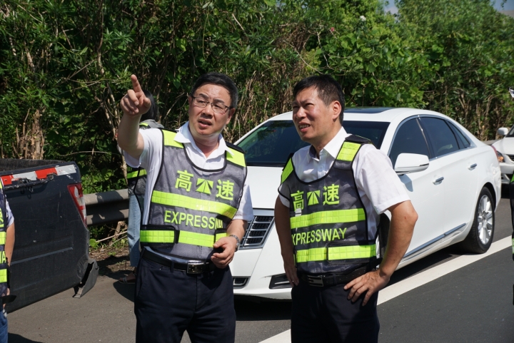 臺州高速完成首個龍門架吊裝 取消省界收費站工作邁出堅實一步 9月7日上午,首個自由流主線虛擬收費站龍門架,在甬臺溫高速公路臺州段溫州方向主線K1668+200M處現場完成吊裝,標志著取消省界收費站工作邁出了堅實的一步。集團董事長、總經理陳文波在吊裝施工現場視察指導工作。集團總工程師江輝,高速交警、施工單位、監理單位、工程部等人員陪同。