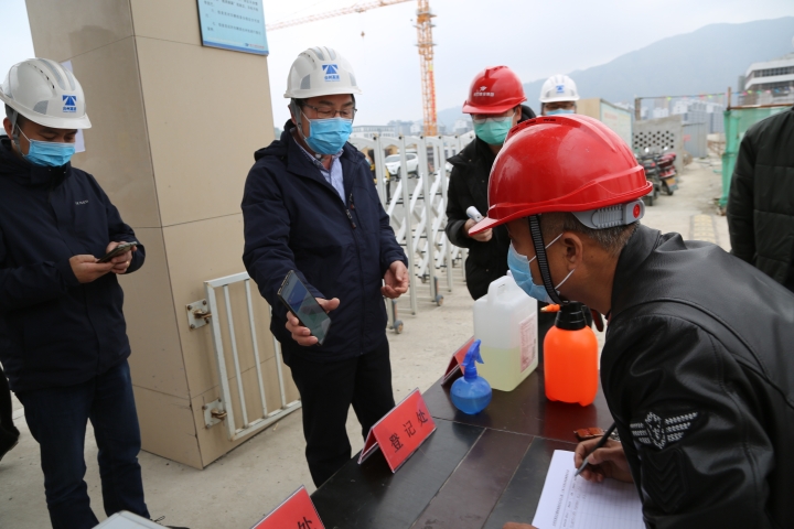 “這是我的綠碼。”臺(tái)州高速集團(tuán)黨委書記、董事長(zhǎng)、總經(jīng)理陳文波主動(dòng)向黃巖玖璽逸墅項(xiàng)目施工工地的防疫人員出示自己的綠碼。經(jīng)過測(cè)體溫、登記、檢查綠碼、消毒等防疫流程,陳文波一行進(jìn)入施工工地。