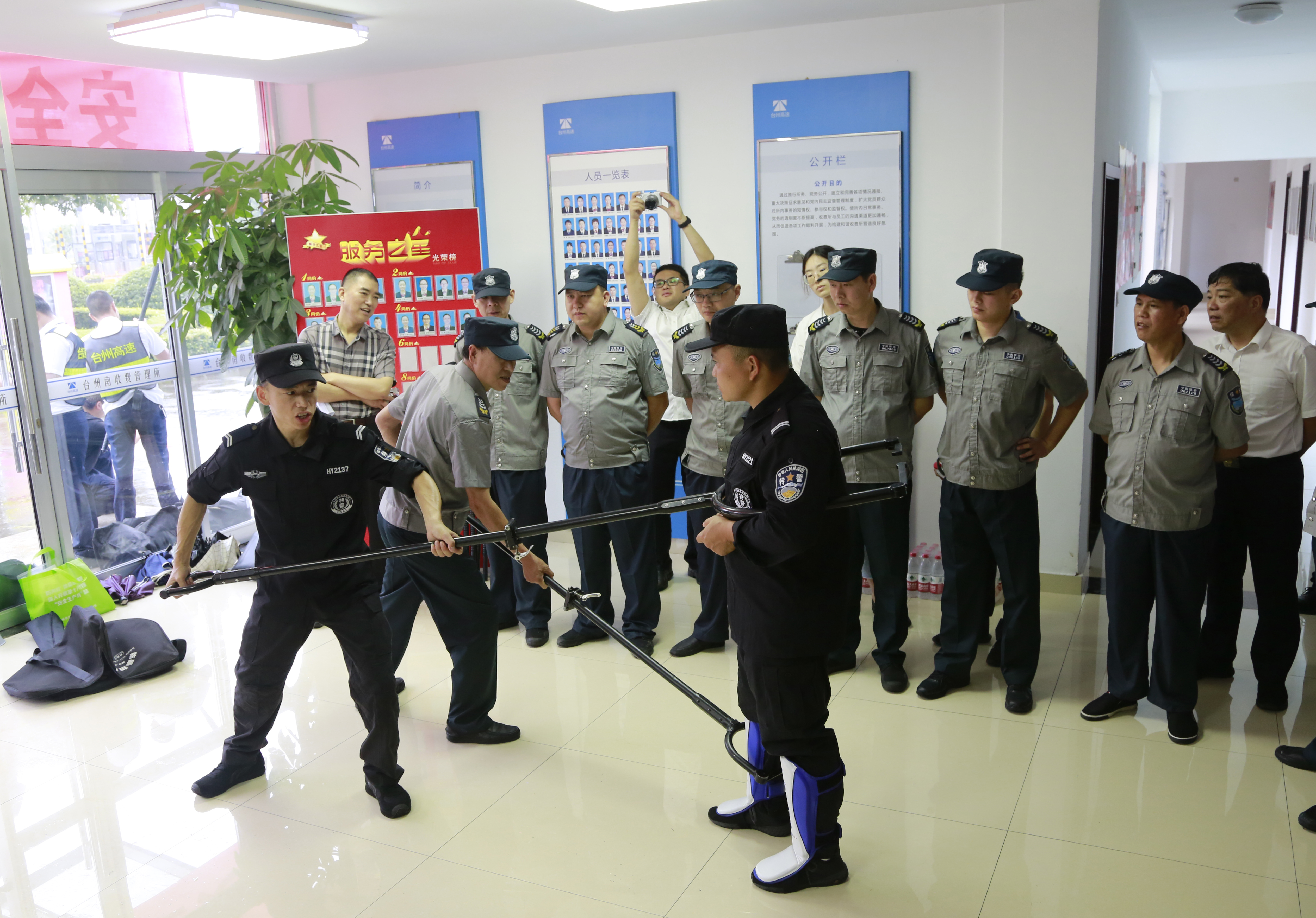 演練開始前,盧尚明對(duì)防爆盾牌、防爆鋼叉、抓捕器、警棍等各類防爆器材的功能和使用方法進(jìn)行一一講解,并示范操作,以及帶領(lǐng)大樓浙師大印象物業(yè)人員現(xiàn)場練習(xí)器械使用。