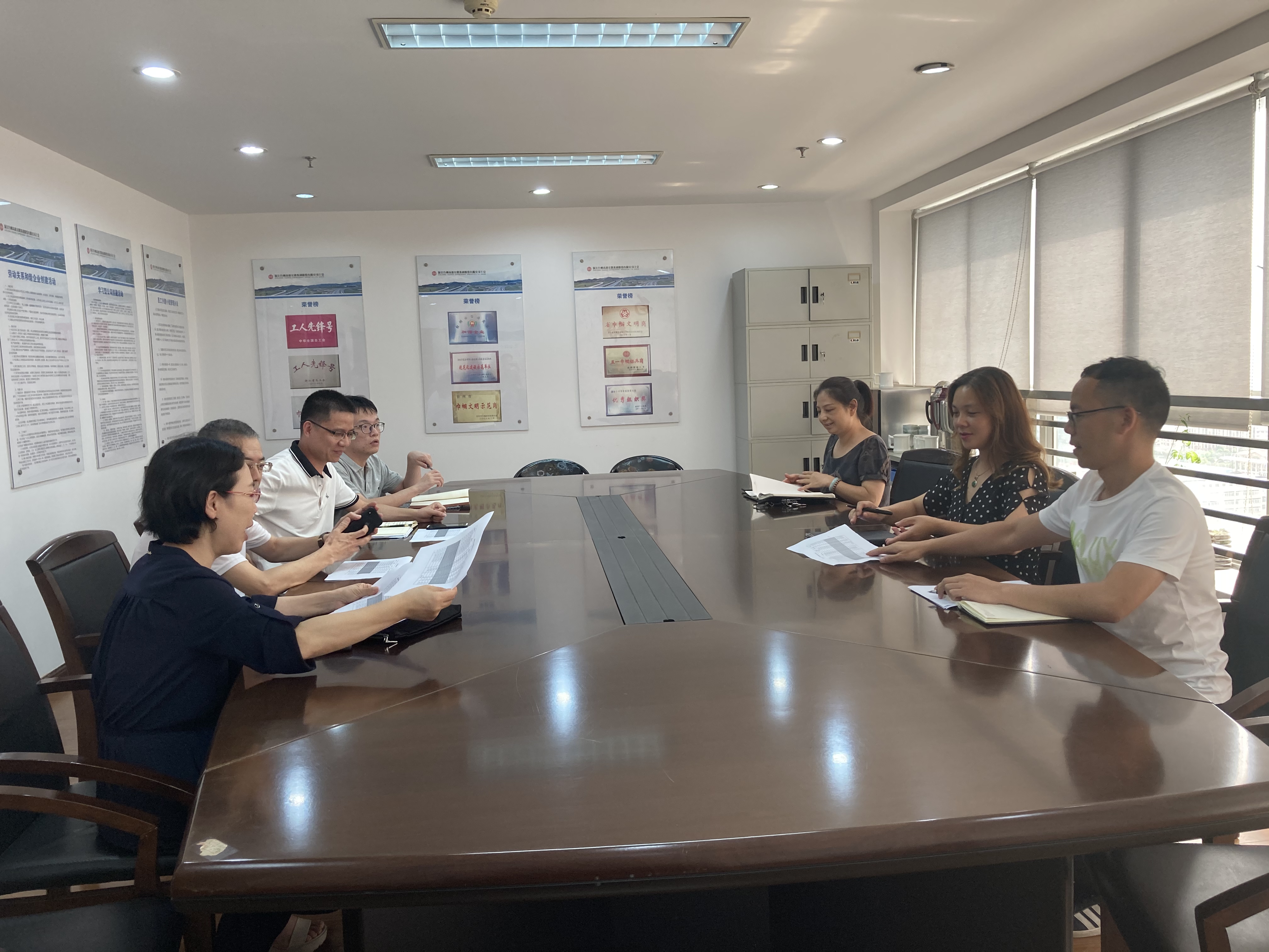 市國(guó)資委一行到公司進(jìn)行工作交流 8月10日上午,臺(tái)州市國(guó)資委產(chǎn)權(quán)管理處處長(zhǎng)胡斌帶領(lǐng)臺(tái)州市國(guó)有資本運(yùn)營(yíng)集團(tuán)相關(guān)人員就債券發(fā)行事宜到公司進(jìn)行交流。公司總會(huì)計(jì)師章彩霞以及結(jié)算中心有關(guān)人員參加現(xiàn)場(chǎng)交流。
