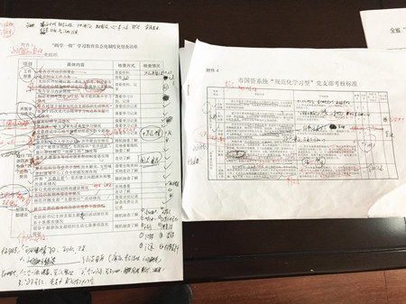 圖為臺州收費所整齊規范的黨建臺賬 檢查組按照督查清單,主要檢查了各支部“兩學一做”學習教育常態化、制度化開展工作等黨建臺賬資料,包括各種學習計劃、安排、學習筆記、學習記錄、會議記錄、文明創建、“作風建設年”等內容的完成落實情況。 通過監督檢查,集團檢查組對各支部進行了全方位、多角度的了解,雖然發現存在一定問題,但各支部落實黨建工作情況總體良好,尤其是臺州收費所黨支部,不僅材料積累豐富,而且檔案臺賬整齊完備、規范有序,值得其它支部學習。 下一步,各支部將針對檢查中發現的問題,迅速抓好整改落實,推進公司黨建工作再上新水平。 毛宇航