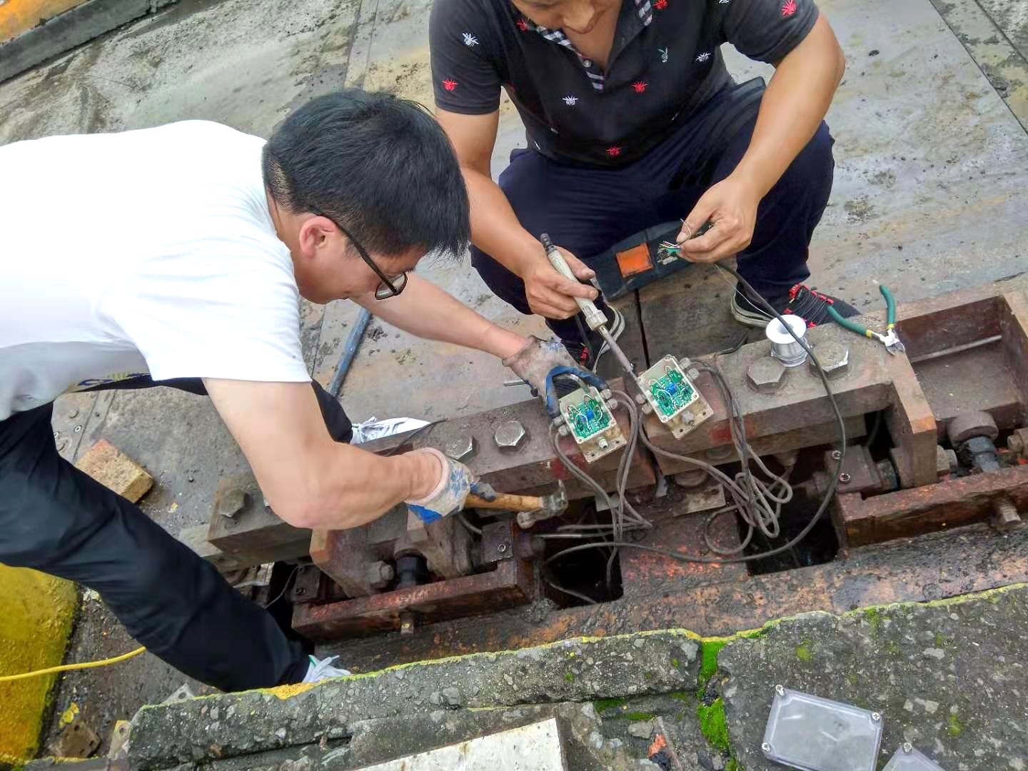 臺州高速集團所轄營運路段4個收費站(臨海南、臺州、臺州南、溫嶺西收費站)地處甬臺溫高速中段,北接上三高速,西連臺金高速,日車流量達上萬輛。 由于過往車輛較多及日常灰塵灑落,計重設備稱臺下方累積了大量淤泥,為使計重設備處在更加良好的運行環境和運行狀態,7月11日,工程部機電設備維養中心聯系維護廠家對5臺稱臺下方淤泥進行集中清理,確保計重收費工作的正常開展。