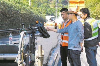 “路面銑刨時有時會出現(xiàn)銑刨不完全存在夾層的現(xiàn)象,如不清理干凈則會嚴重影響攤鋪后路面的平整度。”楊金梁介紹道,所以攤鋪時每道工序,他都時刻緊盯,確保攤鋪的路面不存在任何瑕疵。