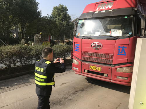 “那就一起送去,這里有我們,別擔(dān)心!”杜佳邊說(shuō)邊拿起相機(jī)幫著稽查人員檢查綠農(nóng)車(chē)。此時(shí),該所副所長(zhǎng)周超也帶著全體行政人員援助收費(fèi),幫忙旁站,發(fā)卡,并站在最冷最累的入口處指揮交通,維護(hù)秩序。