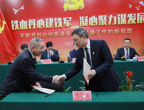 會上,臺州收費所黨支部、臺州南收費所黨支部、大溪嶺隧道所黨支部上臺作黨建工作經驗典型發言。集團領導陳文波與各支部書記簽訂《2019年度黨建工作責任書》、《黨風廉政建設責任書》,各中層以上干部簽訂了《廉潔履職承諾書》。