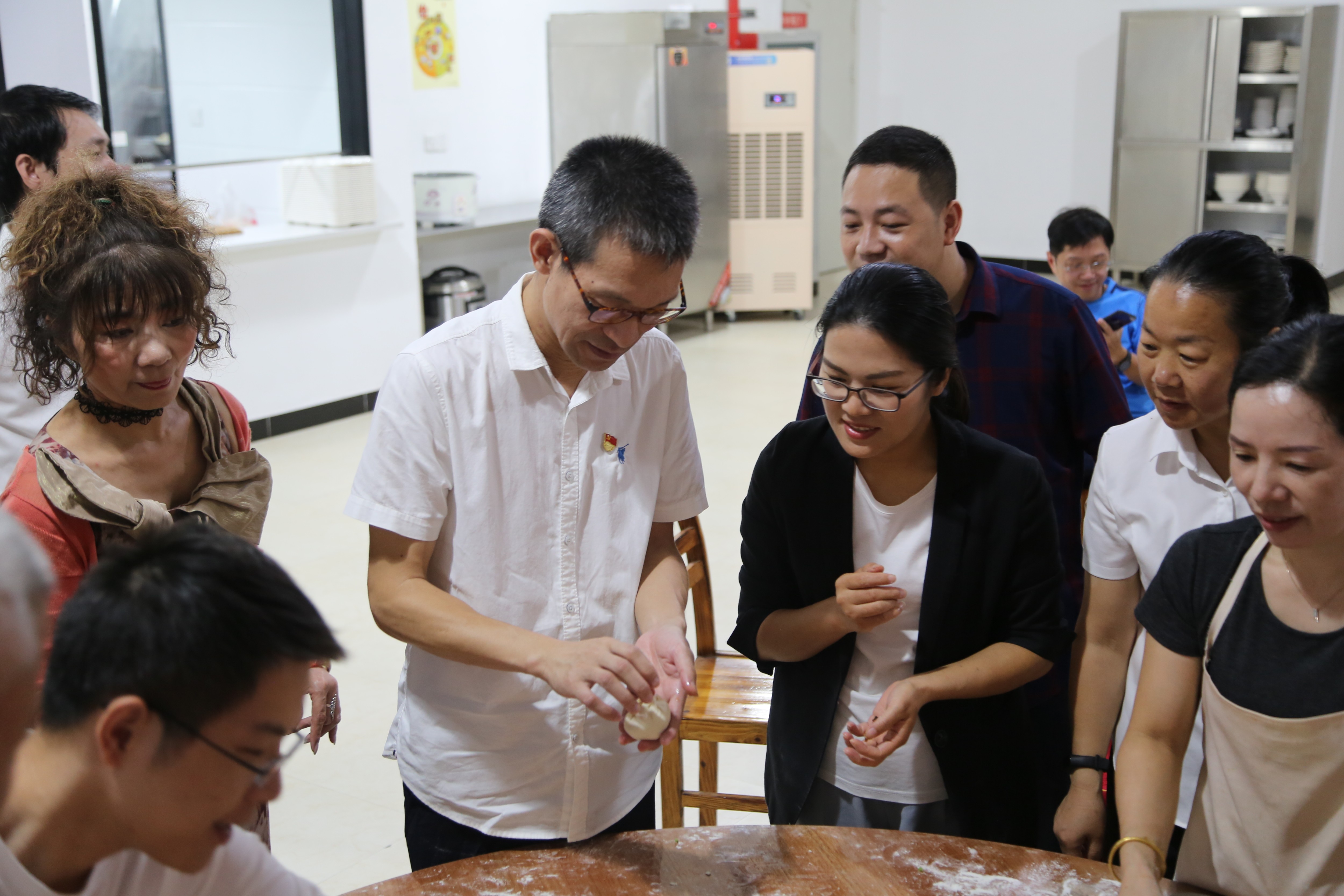 “如何發酵面團?如何搟包子皮?如何捏成漂亮的形狀?”玖璽逸墅展廳食堂工作人員為大家一一講授了制作包子的要領,大家紛紛洗凈雙手,擼起袖子,躍躍欲試,和面、拌餡、搟皮、包包子,分工有序,互幫互助,猶如一個溫馨融洽的大家庭,新老員工在活動中加強了交流,加深厚情誼,為今后更好的團隊合作打下了基礎。