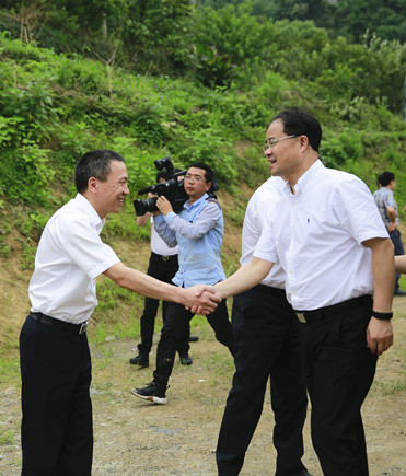 圖為市委書記王昌榮與公司總經理張建平親切握手 “項目進展得如何了?各部門協調處理情況又如何?”王昌榮一到內環路2號隧道施工現場便詢問相關人員,聽取工作匯報。 位于黃巖十里鋪村的內環路2號隧道因涉及部隊軍產拆遷問題,導致該段道路連接線動土開工存在較大困難。為按時完成內環路11月11日主線通車的既定目標,王昌榮召集相關部門實地考察,共商破難。他要求由市建設規劃局牽頭,加強部門間的溝通協調,認真按照有關程序,抓緊辦理各項報批拆遷手續,爭取于6月底前解決軍產拆遷審批問題。各部門要有效管理時間,為主線通車贏得時間。 王昌榮希望,下次再來內環路2號隧道調研時,此處連接線已經打通。 陳林偉