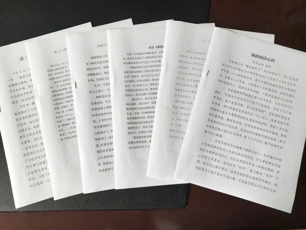圖為集中學習現(xiàn)場 每月月度例會上,市政公司組織員工有針對性地學習集團和市政公司的制度與流程。該公司制作了一本制度匯編,并分發(fā)到人手一本,要求員工認真學習,熟悉公司辦事流程和規(guī)章,工作中做到照章辦事,增強員工的制度觀念。 5月月初,市政公司組織開展讀書思廉活動,要求每位員工讀一本勤政廉政書籍,并撰寫一篇讀書心得。從一篇篇心得體會文章中,看到有從歷史廉政小故事切入的,也有從習近平總書記的新時代中國特色社會主義思想和十九大報告中領悟道理的,字字流露了真情實感,句句體現(xiàn)出真切感悟,真正做到了學有所悟,營造了良好的學廉思廉的氛圍。